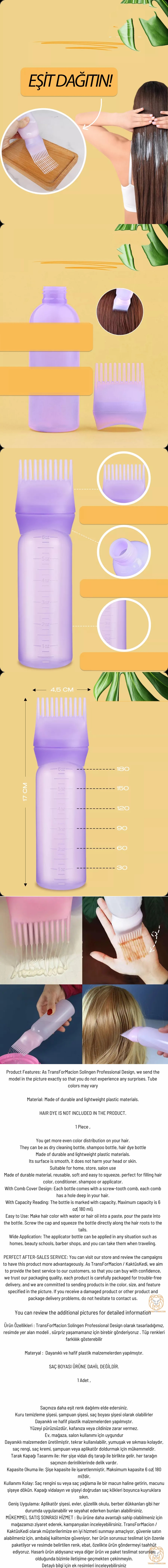 Dayanıklı malzemeden üretilmiştir, tekrar kullanılabilir, yumuşak ve sıkması kolaydır, saç rengi, saç kremi, şampuan veya aplikatör doldurmak için mükemmeldir.