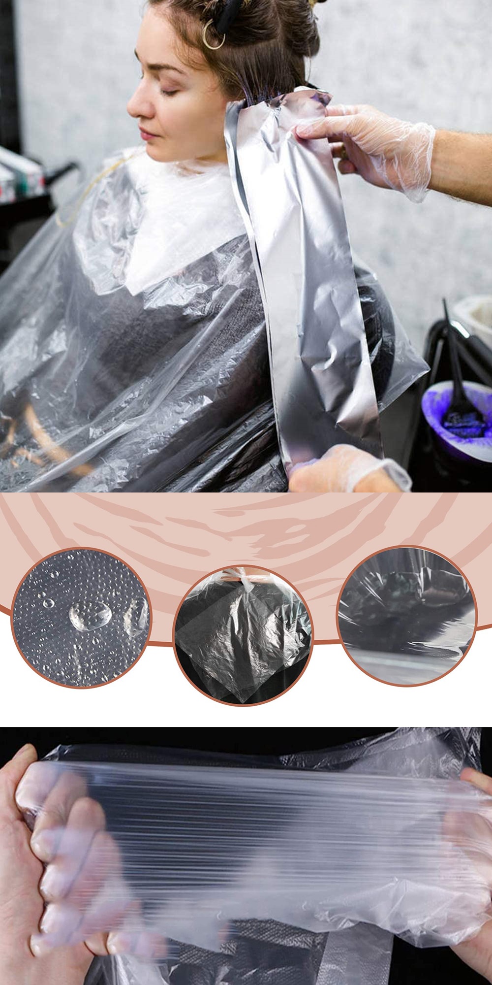 HAFİF, SU GEÇİRMEZ, YIRTILMAYA DAYANIKLI TASARIM - Bu pelerinler hafif plastikten yapılmış olsalar da dayanıklıdırlar ve düzenli kullanımda yırtılmazlar. Su geçirmez tasarımı, saç yıkarken suyu giysilerden uzak tutacaktır.