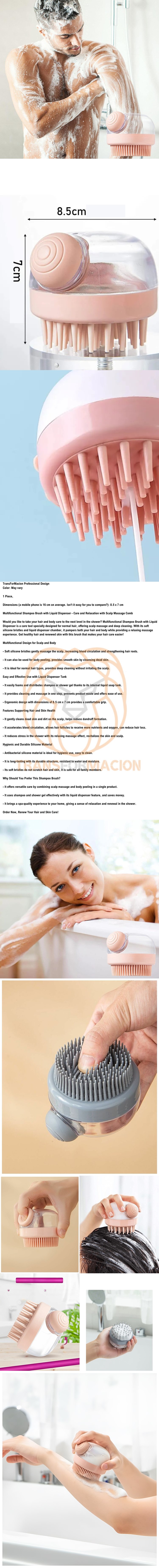 Sıvı Dağıtıcı Özellikli Çok Fonksiyonlu Şampuan Fırçası ile duş deneyiminizi bir bakım ritüeline dönüştürün! Saçlarınızı ve cildinizi şımartarak sağlıklı, parlak ve pürüzsüz bir görünüme kavuşun. Hem kendiniz hem de sevdikleriniz için harika bir hediye seçeneği olan bu fırçayı hemen sepetinize ekleyin. Stoklarla sınırlı olan bu ürünü kaçırmamak için acele edin! Doğal güzelliğinizi ortaya çıkarmanın tam zamanı!