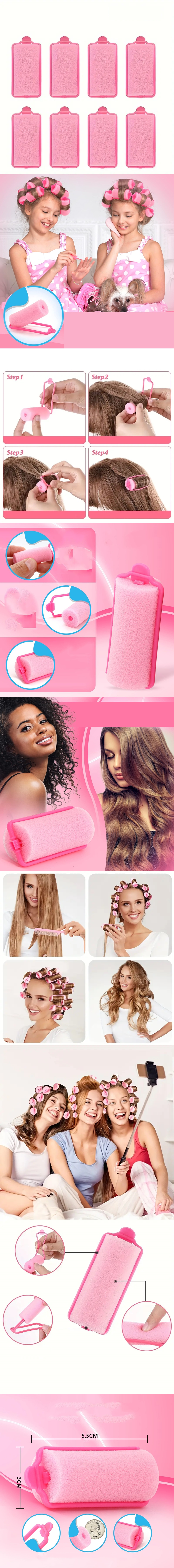 Saçlar için sünger bigudiler, çeşitli saç tipleri ve dokuları ile ıslak ve kuru saçlar için kullanılabilir. Güvenli bir geçmeli kilitle kakülleriniz veya saçlarınız için dalgalar, retro bukleler, kaküller ve diğer şekiller yapmak için köpük bukle maşalarını kullanabilirsiniz. Bu size farklı modelleme fırsatları konusunda yardımcı olabilir ve her yaştan ve meslekten insana uygundur.