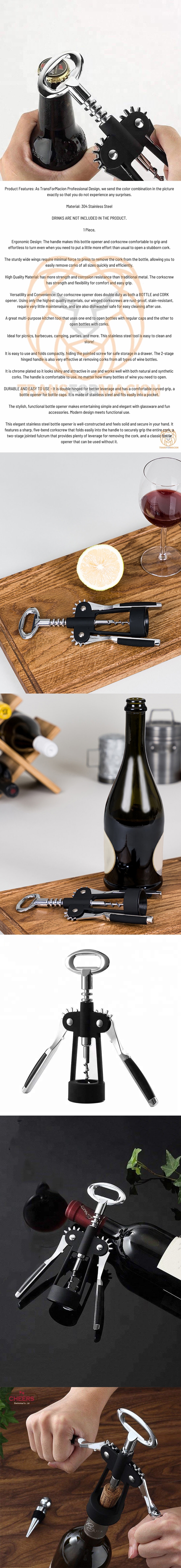 Sağlam geniş kanatlar, mantarı şişeden çıkarmak için bastırmak için minimum kuvvet gerektirir ve her boyuttaki mantarı hızlı ve verimli bir şekilde kolayca çıkarmanıza olanak tanır.