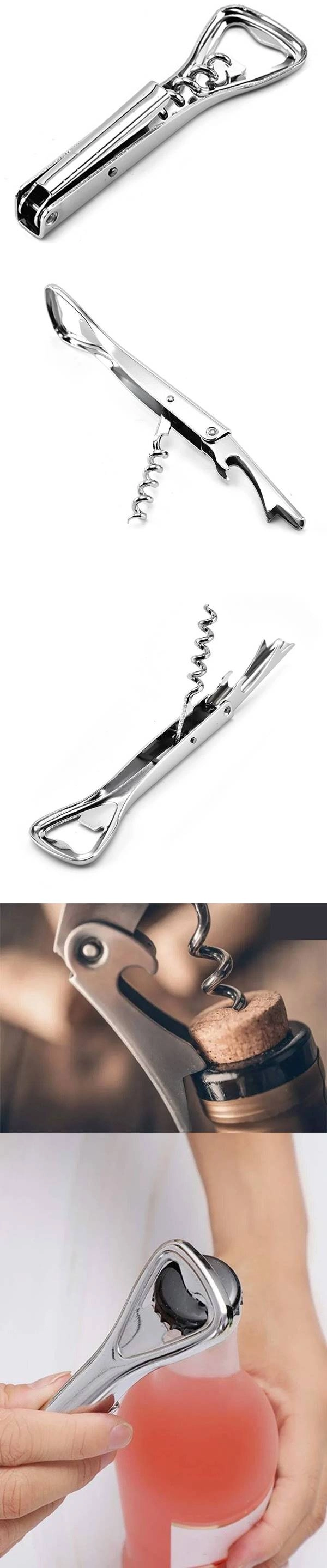 Bu zarif paslanmaz çelik açacak, İyi yapılandırılmıştır ve elinizde sağlam, güvenli bir his verir. Kolayca sapa katlanan keskin, tüm mantarı güvenli bir şekilde kavramak için beş bükümlü bir tirbuşon, mantarı çıkarmak için büyük bir kaldıraç sağlayan iki aşamalı eklemli bir dayanak noktası ve olmadan kullanılabilen klasik bir şişe açacağı vardır.