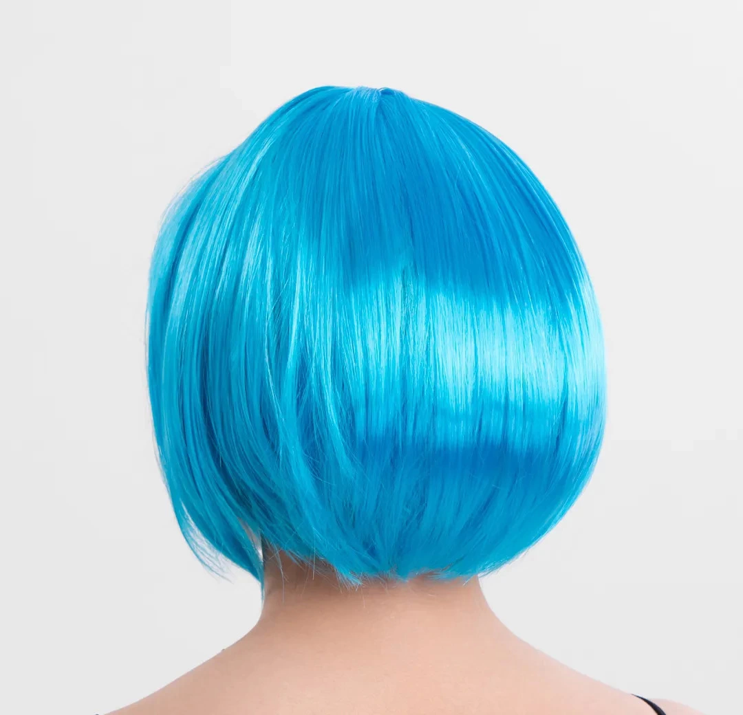 Turkuaz Açık Mavi Renk Düz Kesim Kısa Küt Parti Peruğu