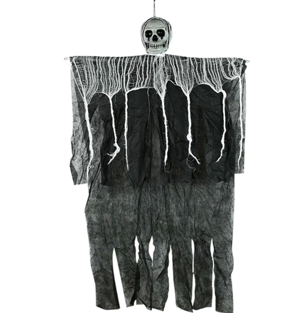 Ürpertici Kuru Kafa Korku Hayalet Saçaklı Dekor 90x50 Cm