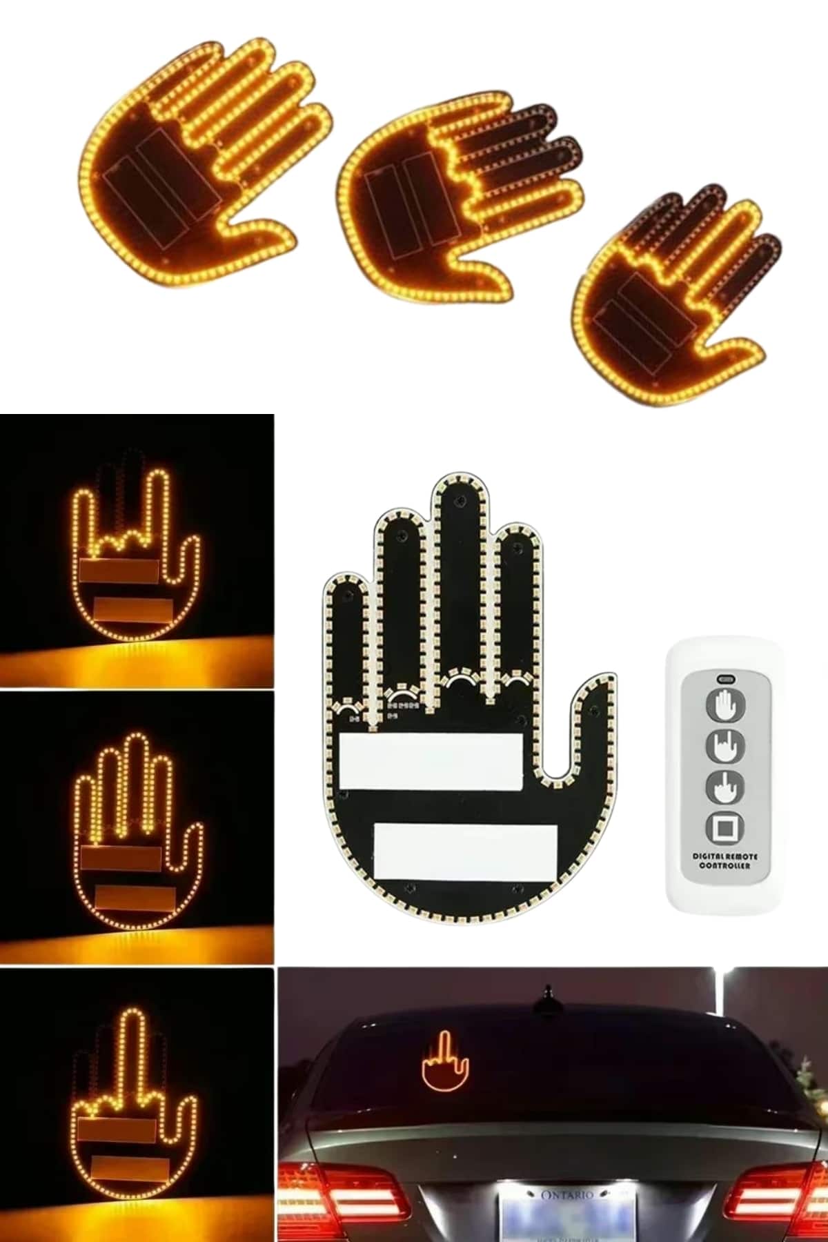 Uzaktan Kumandalı El Orta Parmak Led Araç Camına Özel