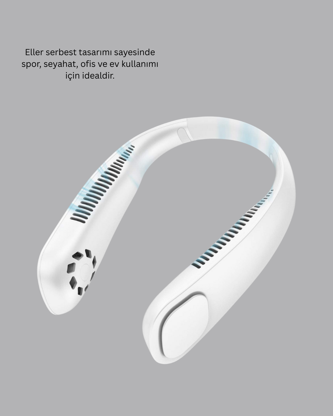 Boyun bandı şeklindeki ergonomik tasarımı ile tamamen eller serbest kullanım sunar. Spor yaparken, bisiklete binerken, bahçede çalışırken ya da kamp yaparken serinliği kesintisiz yaşayın. Telefonla uğraşırken veya alışveriş yaparken bile konforlu bir kullanım sağlar.