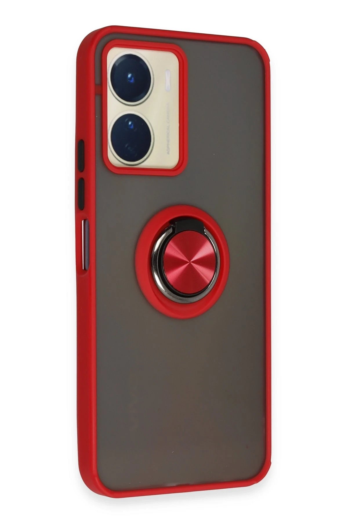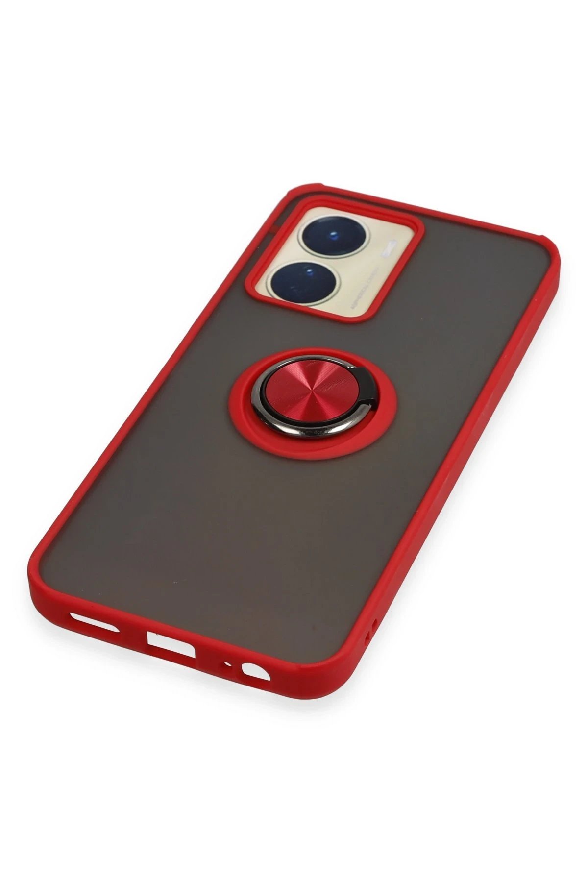 Vivo Y16 Kılıf Montreal Yüzüklü Silikon Kapak - Kırmızı-(5796)