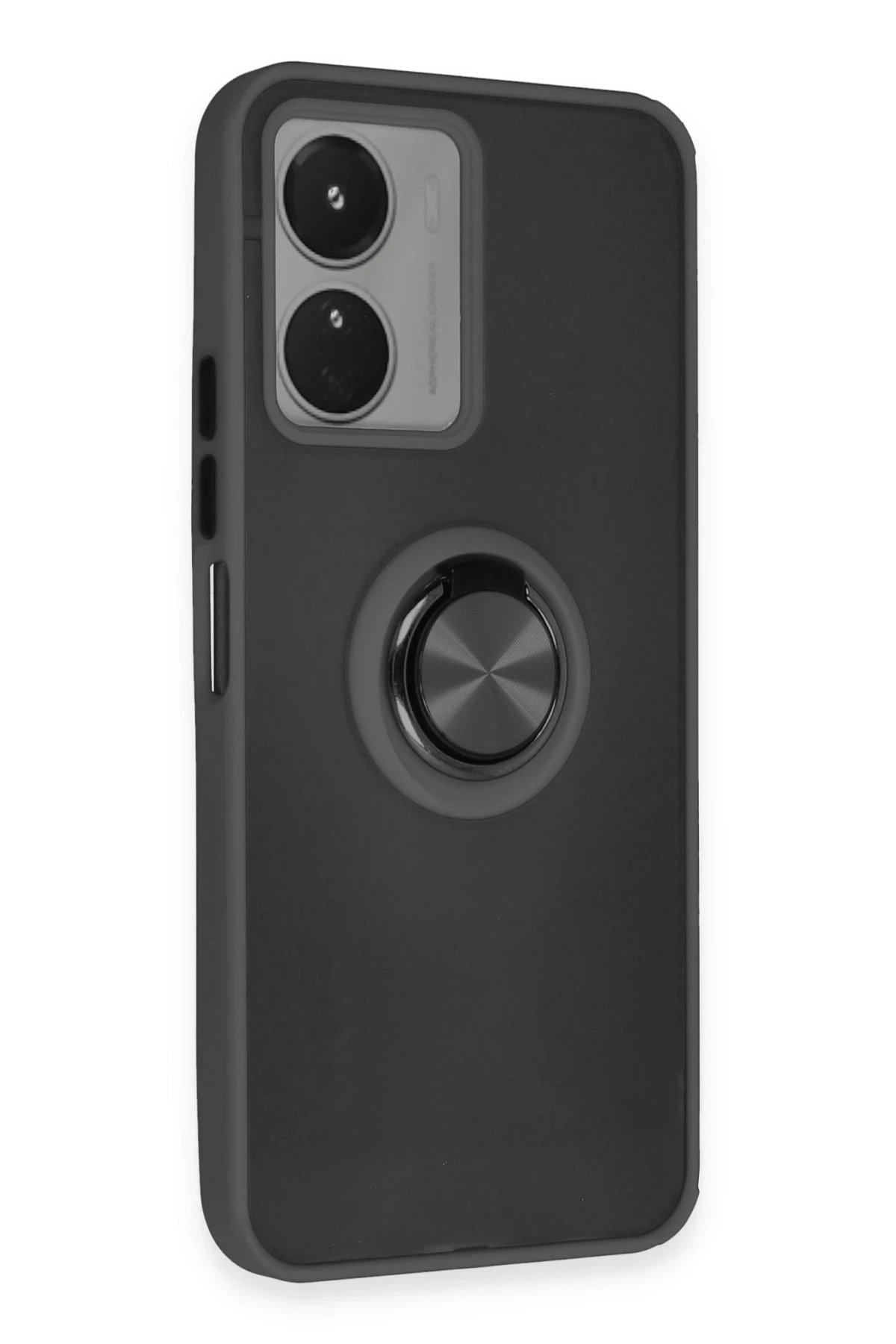 Vivo Y16 Kılıf Montreal Yüzüklü Silikon Kapak - Siyah-(5796)