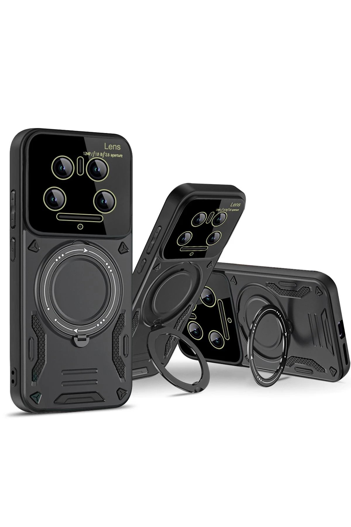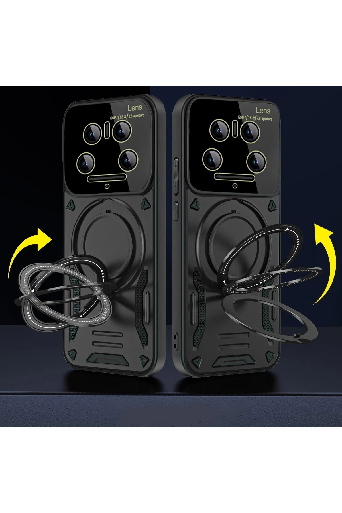 Xiaomi Mi 14 Ultra Kılıf Joy Lens Standlı Kapak - Koyu Yeşil-(5796)