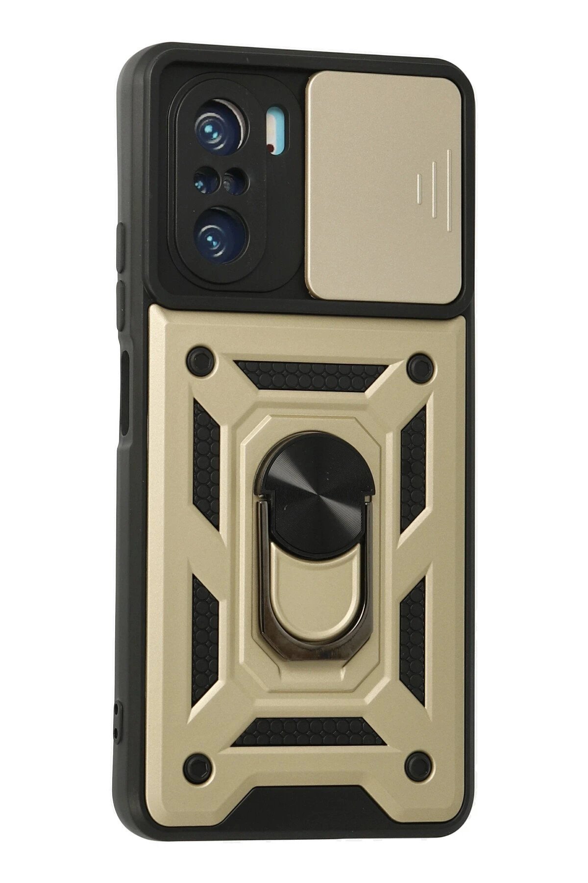 Xiaomi Poco F3 Kılıf Pars Lens Yüzüklü Silikon - Gold-(5796)