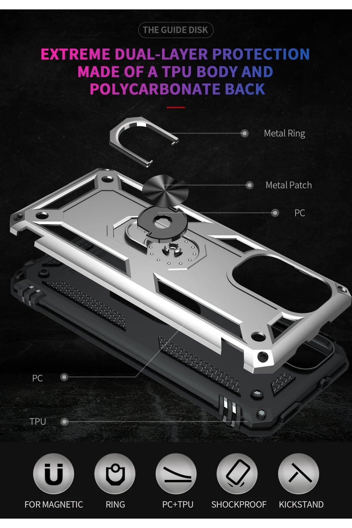 Dış kasası rubber malzemeden (Yarı Sert) çerçeve iç kısım TPU silikon malzemeden (Yumuşak) üretilmiştir. Cihazınızı takıp çıkartırken telefon çizilmez.