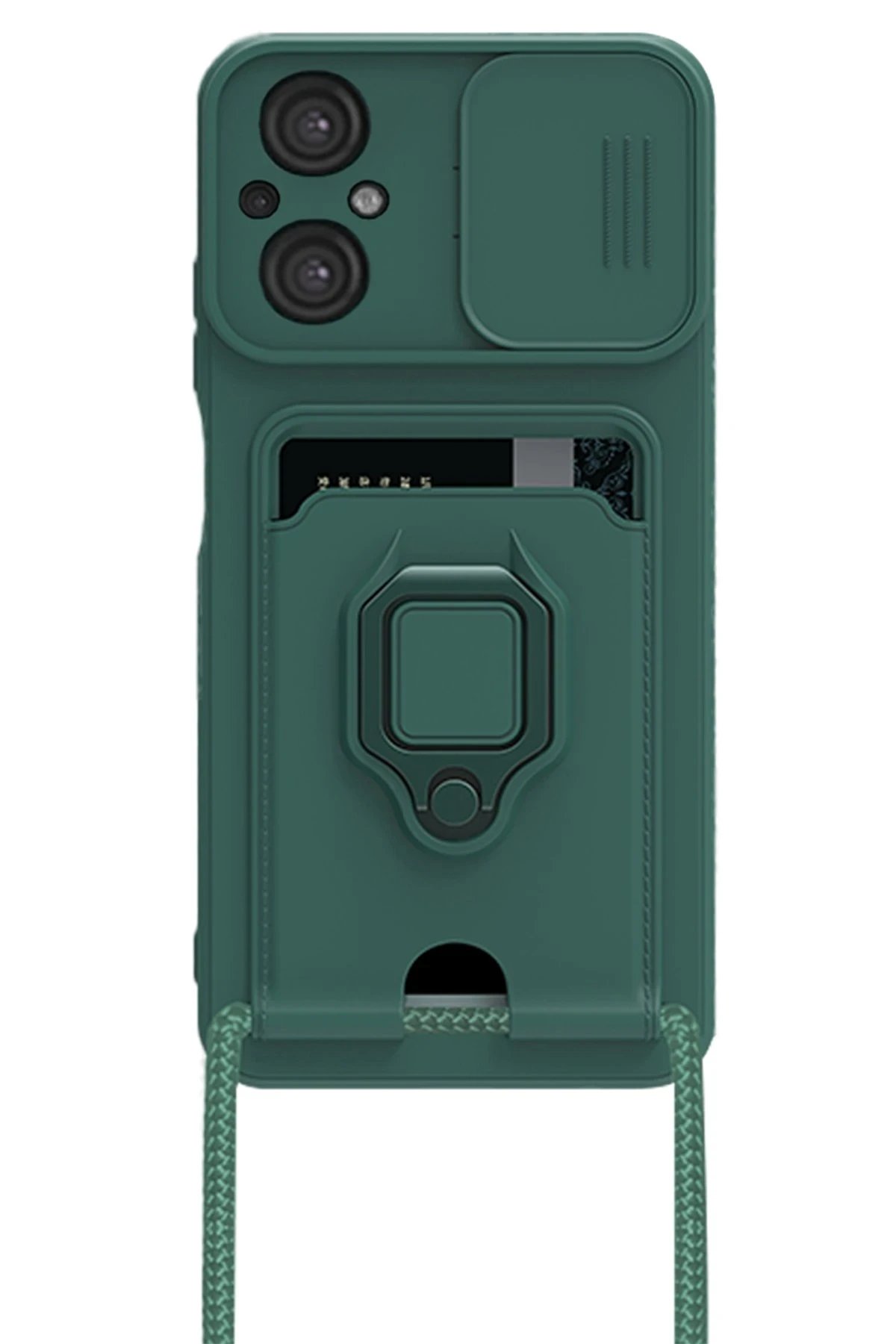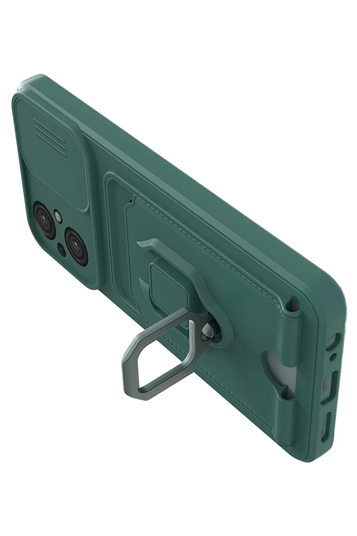 Xiaomi Poco M5 Kılıf Zuma Kartvizitli Yüzüklü Silikon - Yeşil-(5796)