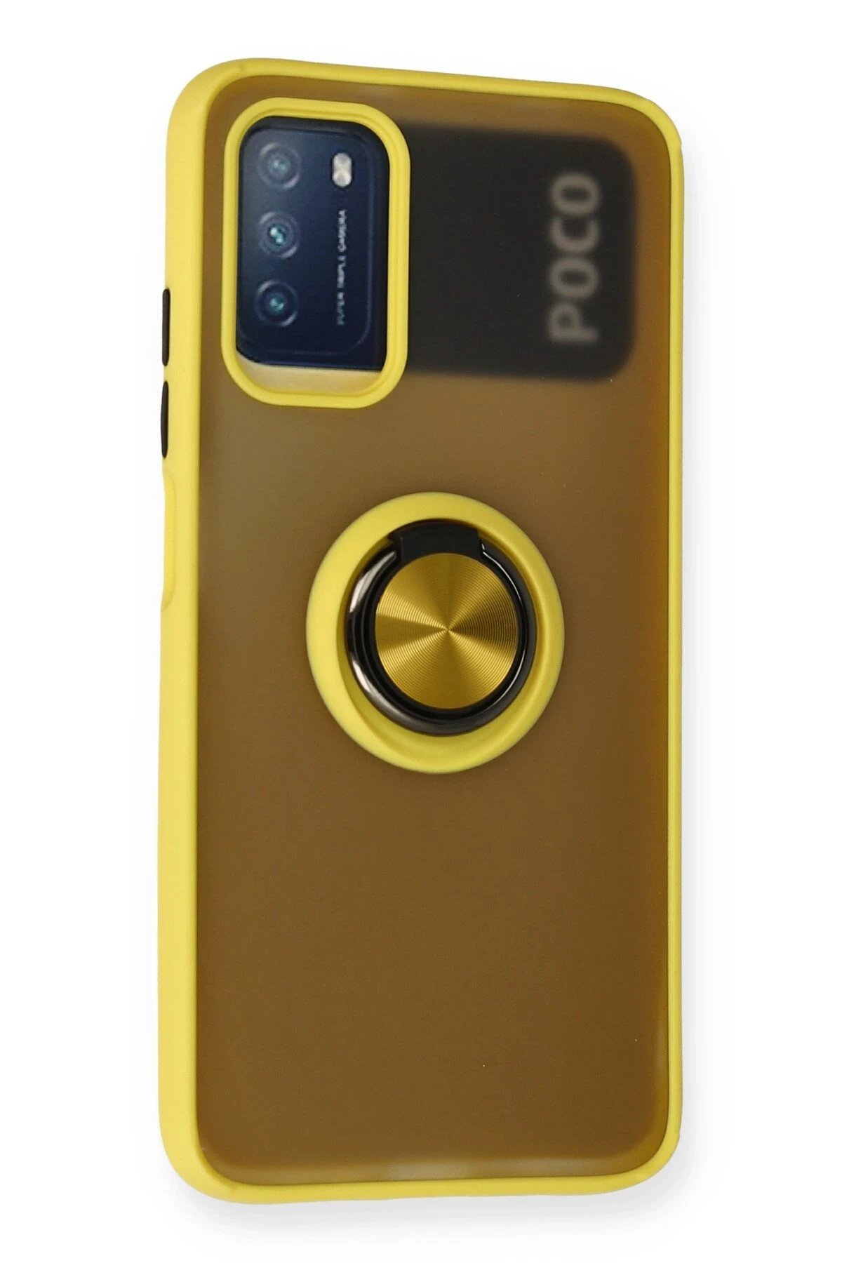 Xiaomi Redmi 9T Kılıf Montreal Yüzüklü Silikon Kapak - Sarı-(5796)