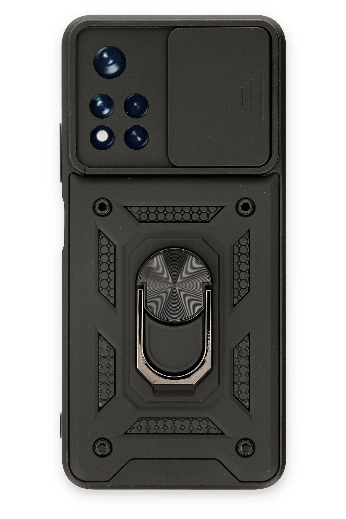 Xiaomi Redmi Note 11T Kılıf Pars Lens Yüzüklü Silikon - Siyah-(5796)