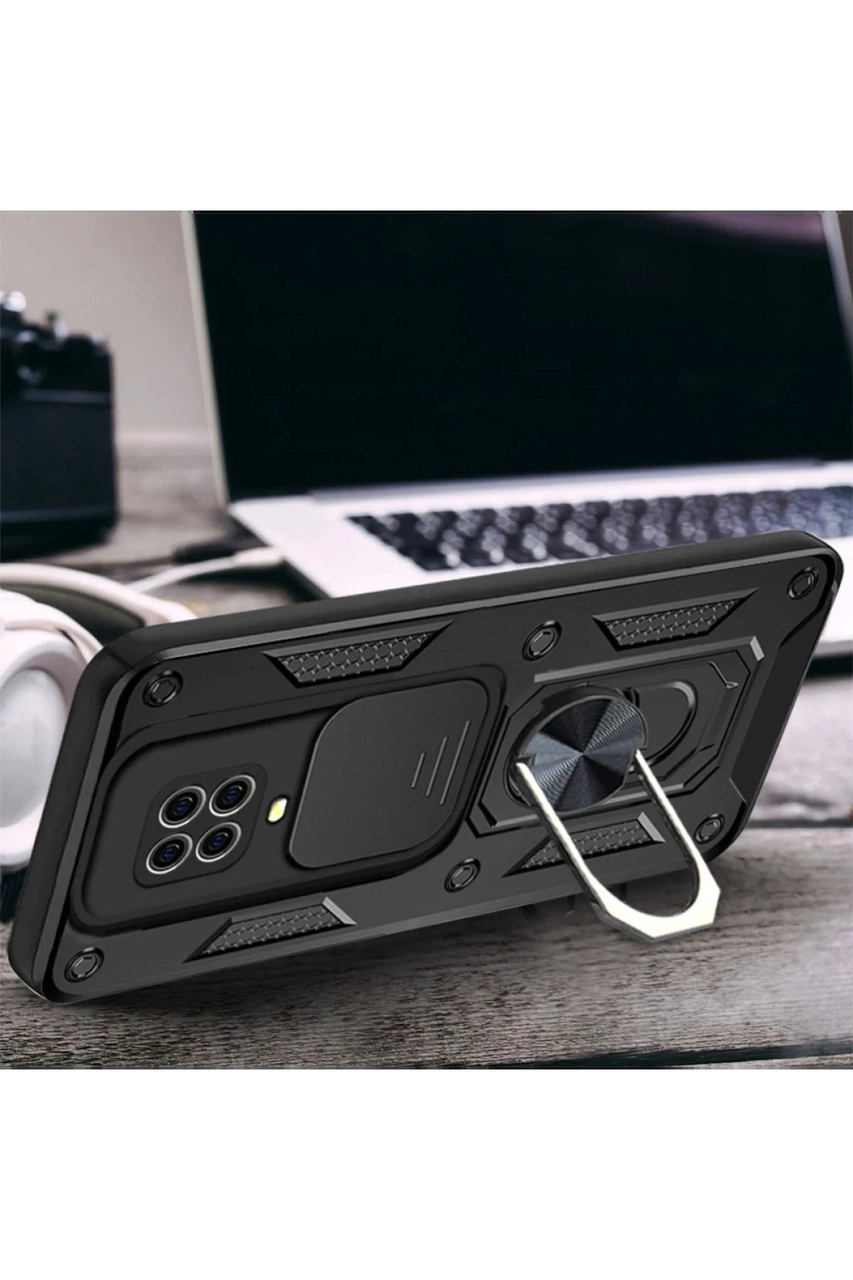 Xiaomi Redmi Note 9 Pro Kılıf Pars Lens Yüzüklü Silikon - Siyah-(5796)