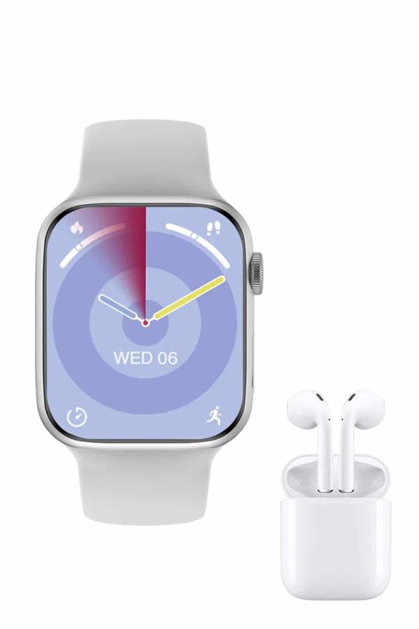 Yeni Nesil Akıllı Saat Ve Kulaklık Seti Gümüş Kasa Zarif Tasarım Çok Fonksiyonlu