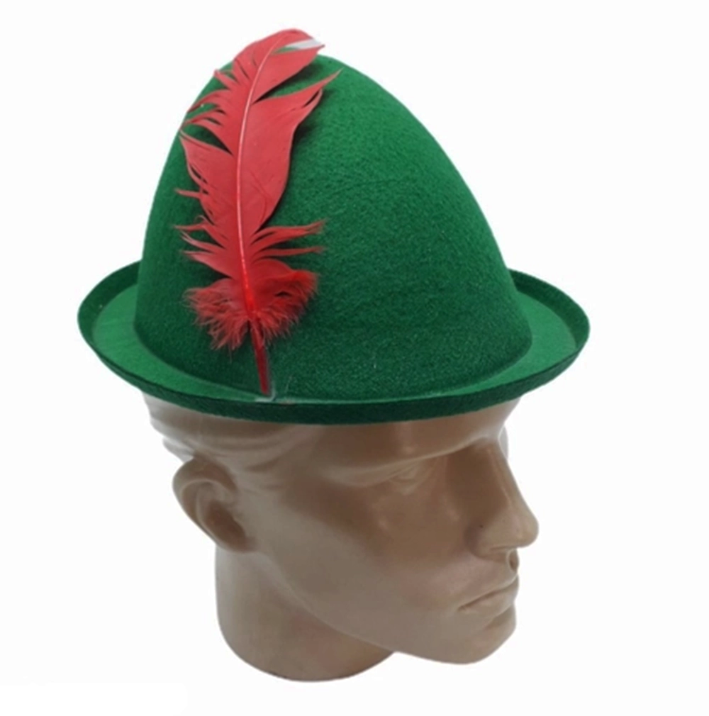 Yeşil Renk Kırmızı Tüylü Peter Pan Şapkası Robin Hood Şapkası 24x23 Cm